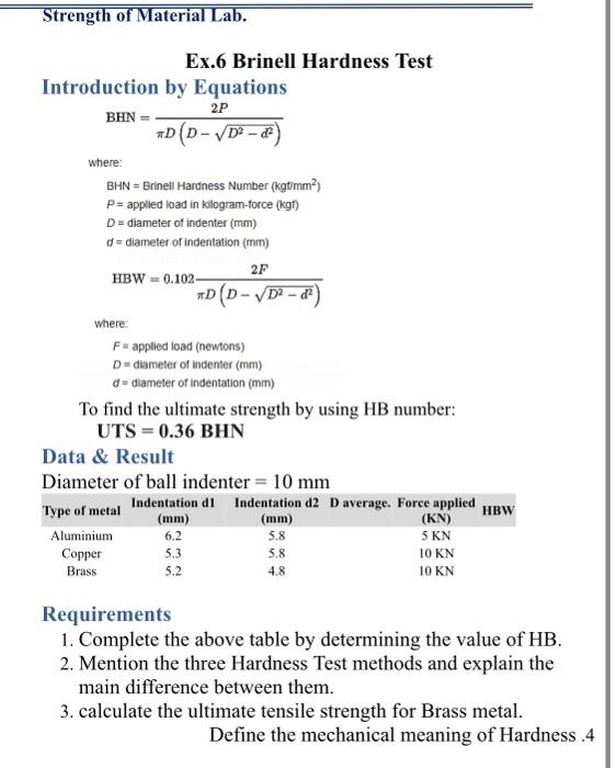 Solved Strength Of Material Lab 2p Ex 6 Brinell Hardness Chegg Com